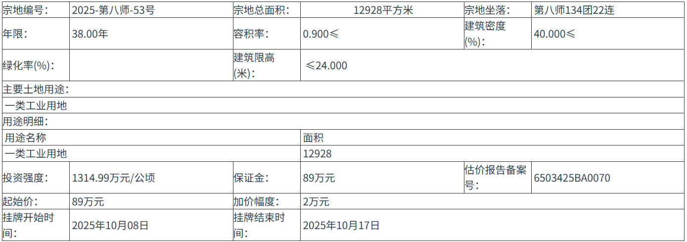 2025-第八师-53号 号地块:2025年10月08日 10时00分 至 2025年10月17日 17时00分;
