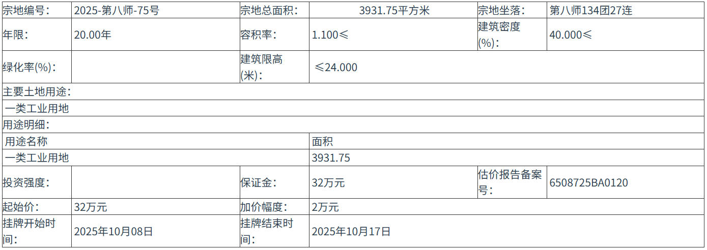 2025-第八师-75号 号地块:2025年10月08日 10时00分 至 2025年10月17日 17时00分;