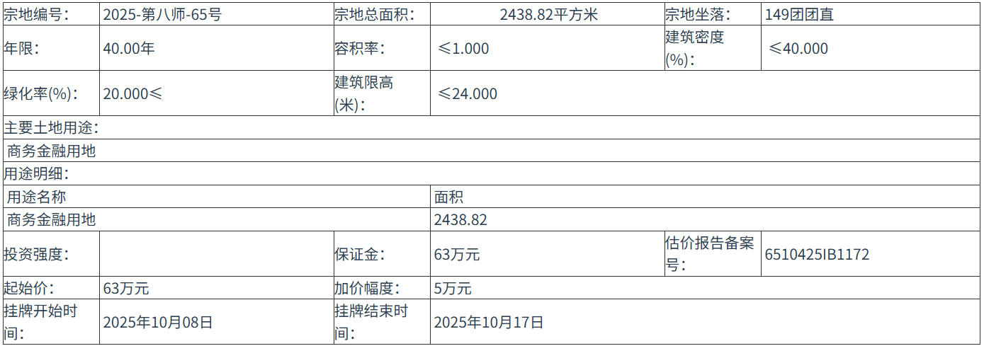 2025-第八师-65号 号地块:2025年10月08日 10时00分 至 2025年10月17日 17时00分;