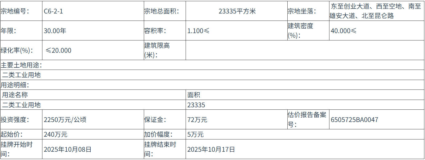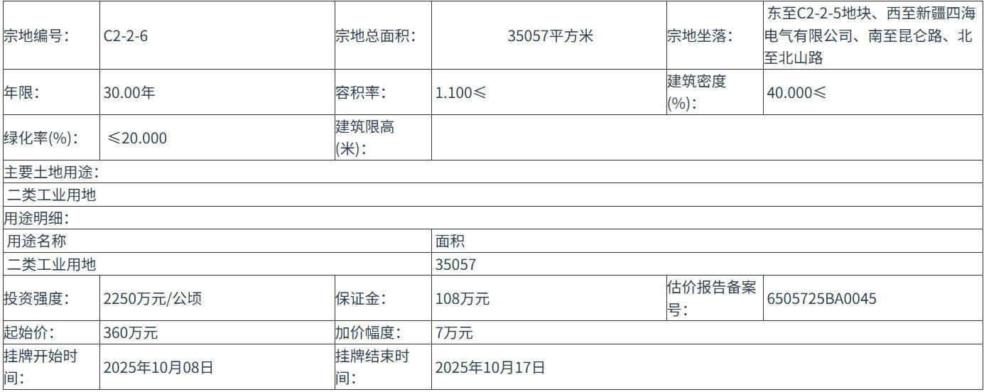 C6-2-1 号地块:2025年10月08日 10时00分 至 2025年10月17日 20时00分;