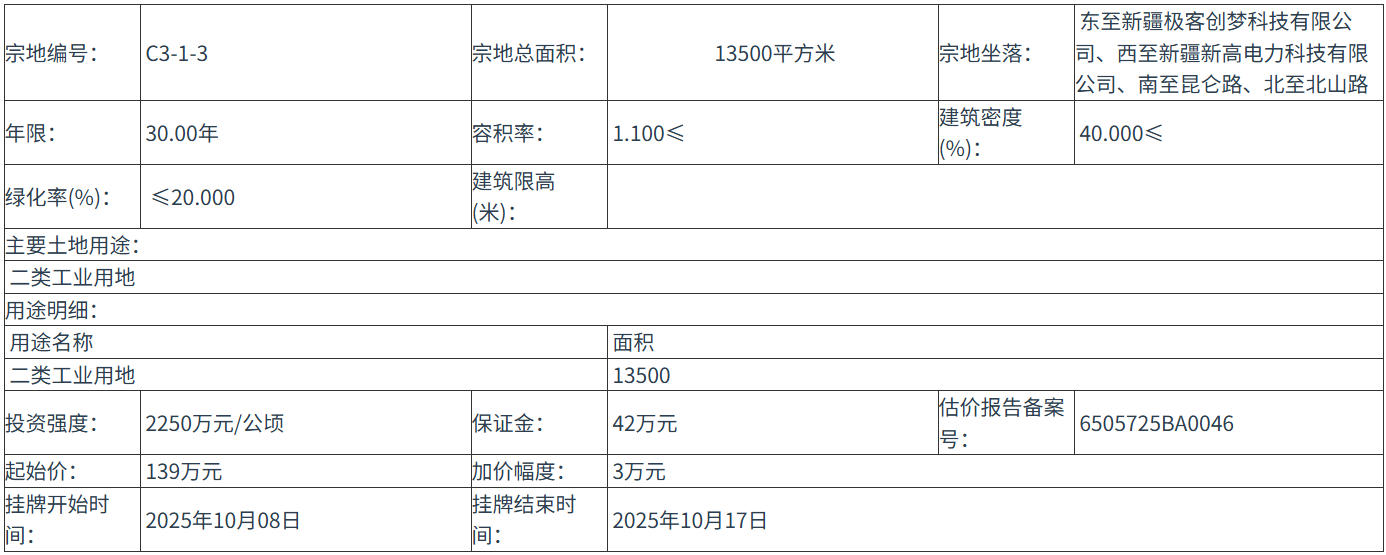 C3-1-3 号地块:2025年10月08日 10时00分 至 2025年10月17日 20时00分;