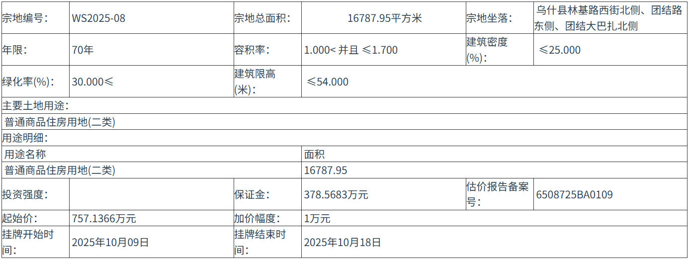 WS2025-08 号地块:2025年10月09日 12时00分 至 2025年10月18日 12时00分;