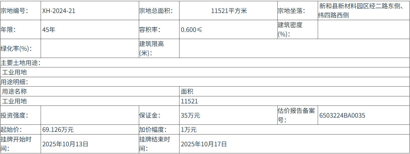 XH-2024-21 号地块:2025年10月13日 12时00分 至 2025年10月17日 12时00分;
