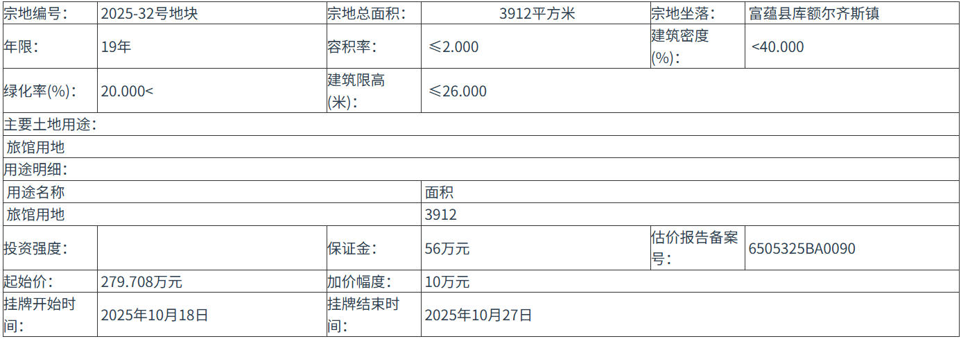 2025-32号地块 号地块:2025年10月18日 12时00分 至 2025年10月27日 11时00分;