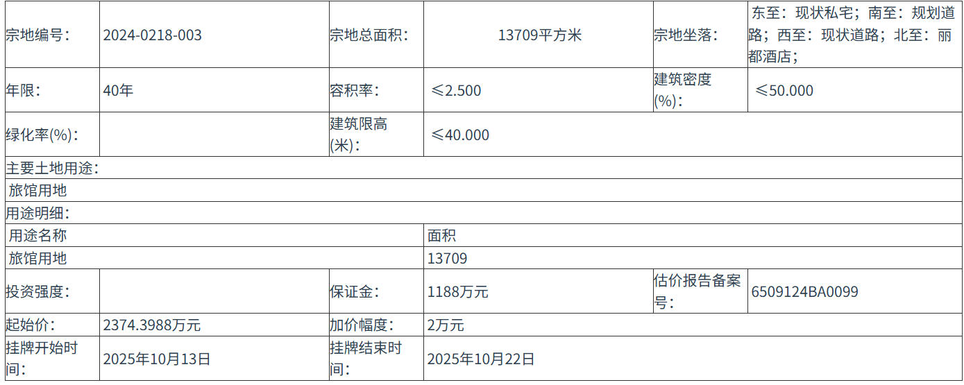 2024-0218-003 号地块:2025年10月13日 10时00分 至 2025年10月22日 20时00分;