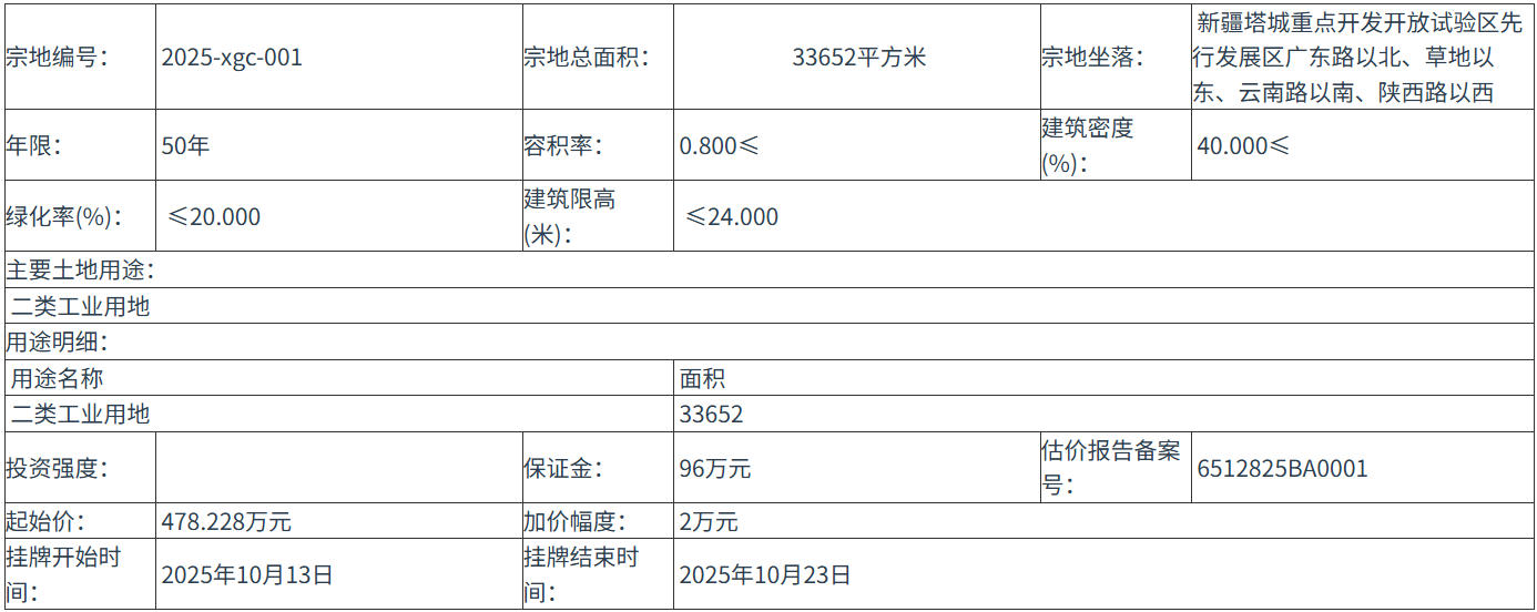 六、本次国有土地使用权挂牌活动 在 塔城地区自然资源局塔城重点开发开放试验区分局 进行。各地块挂牌时间分别为: