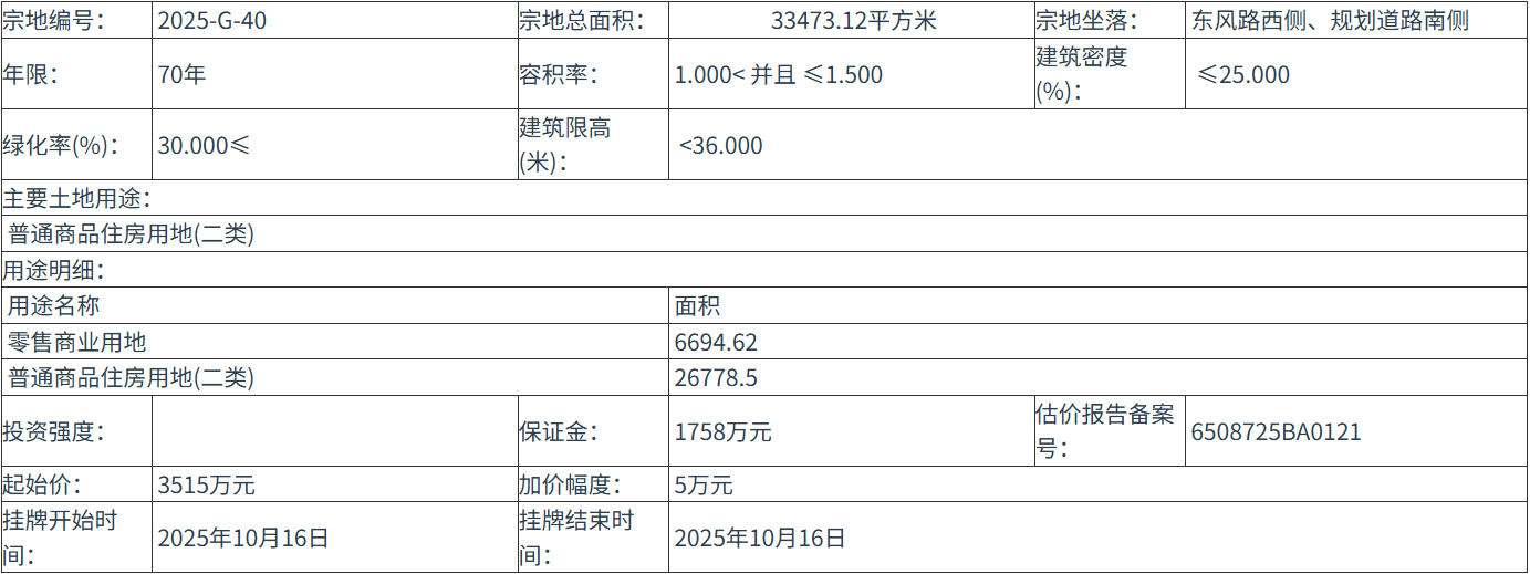 2025-G-40 号地块:2025年10月16日 10时00分 至 2025年10月16日 18时00分;