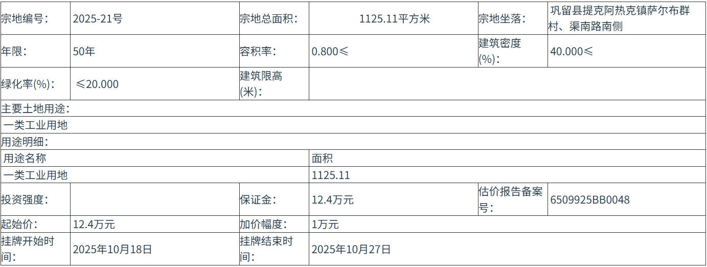 2025-21号 号地块:2025年10月18日 10时00分 至 2025年10月27日 19时00分;
