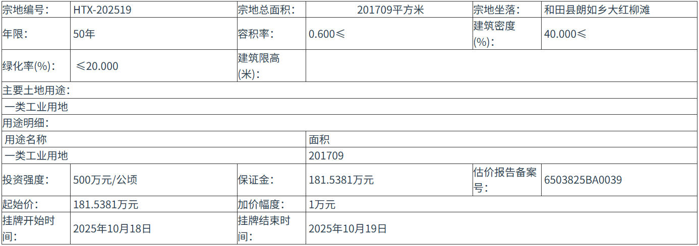 HTX-202519 号地块:2025年10月18日 12时00分 至 2025年10月19日 12时00分;