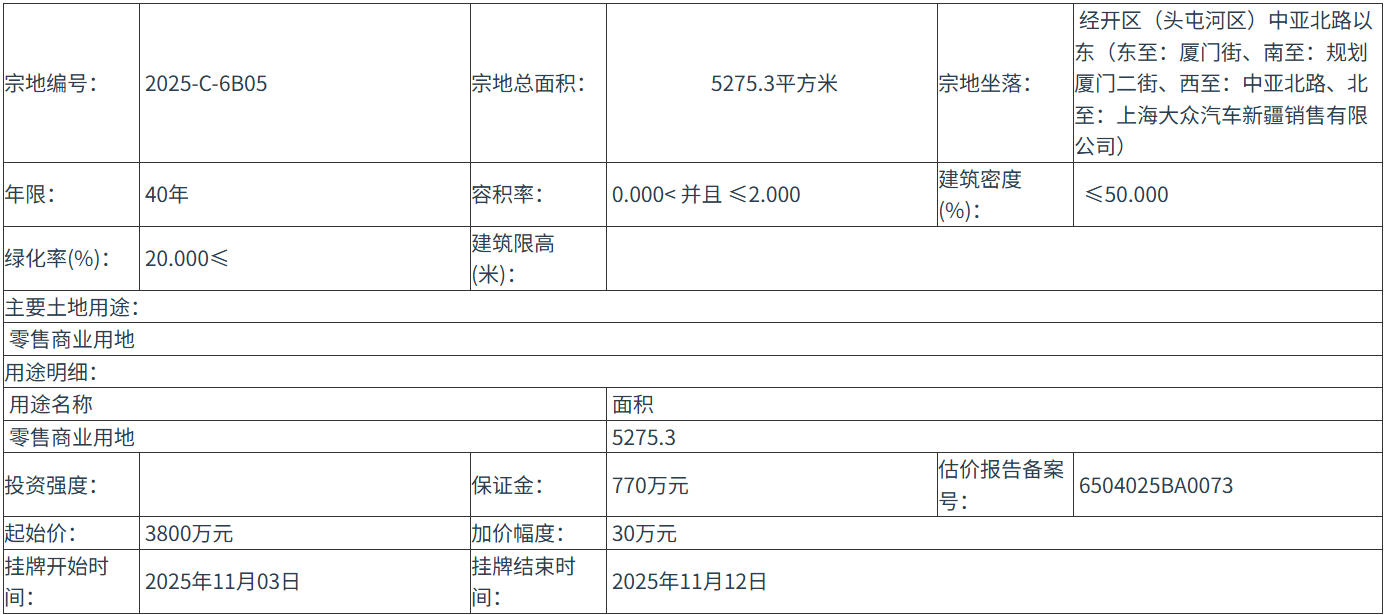 2025-C-6B05 号地块:2025年11月03日 11时00分 至 2025年11月12日 16时00分;