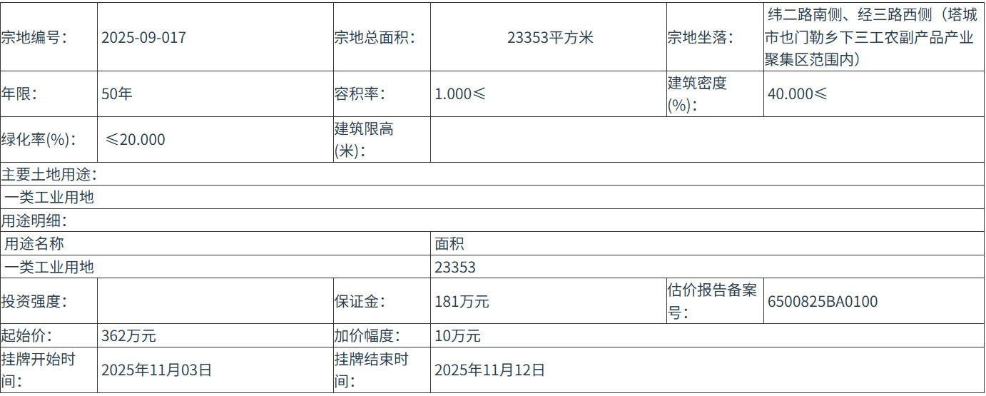 2025-09-017 号地块:2025年11月03日 12时00分 至 2025年11月12日 12时00分;