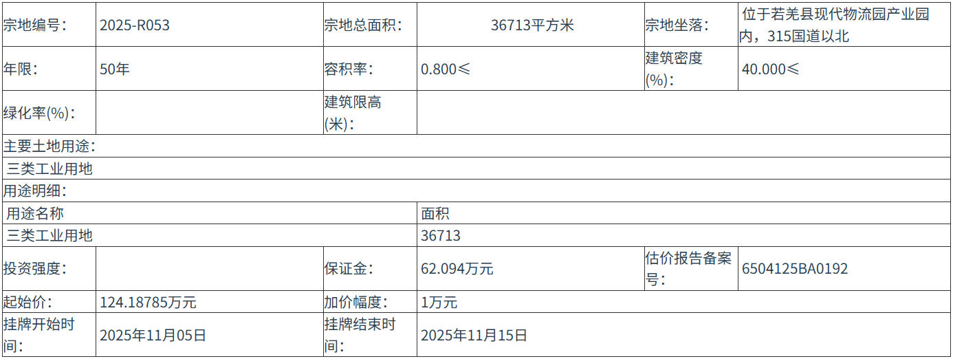 2025-R053 号地块:2025年11月05日 10时00分 至 2025年11月15日 12时00分;